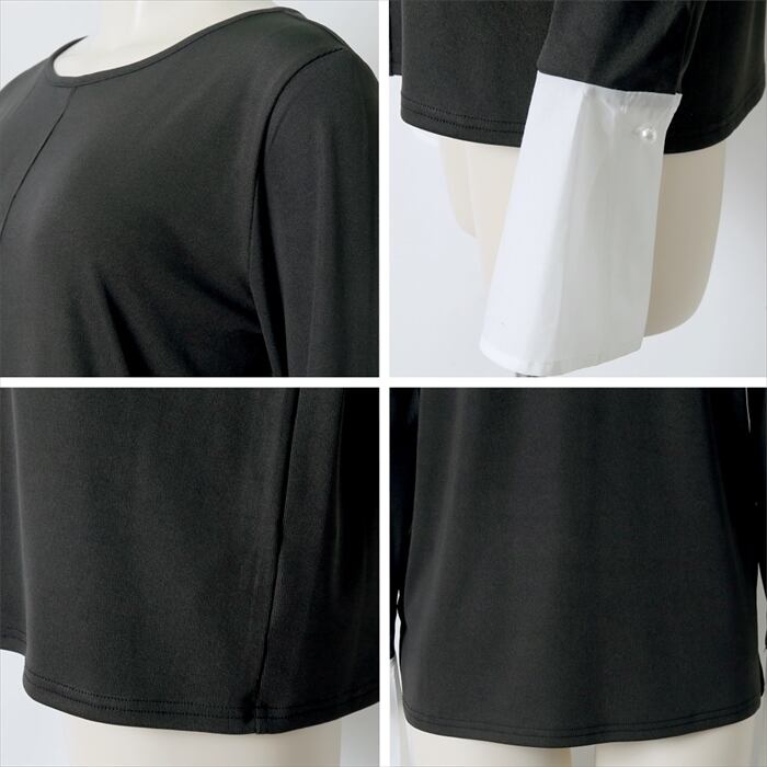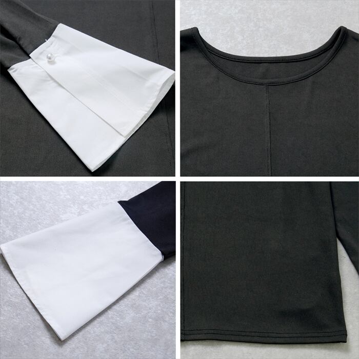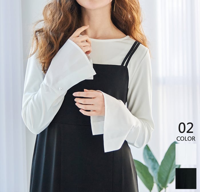 #トップス#カットソー#レディースリブ#ベルスリーブ#インナー#長袖#レイヤード風#重ね着#シンプル#無地#ベルスリーブリブトップス